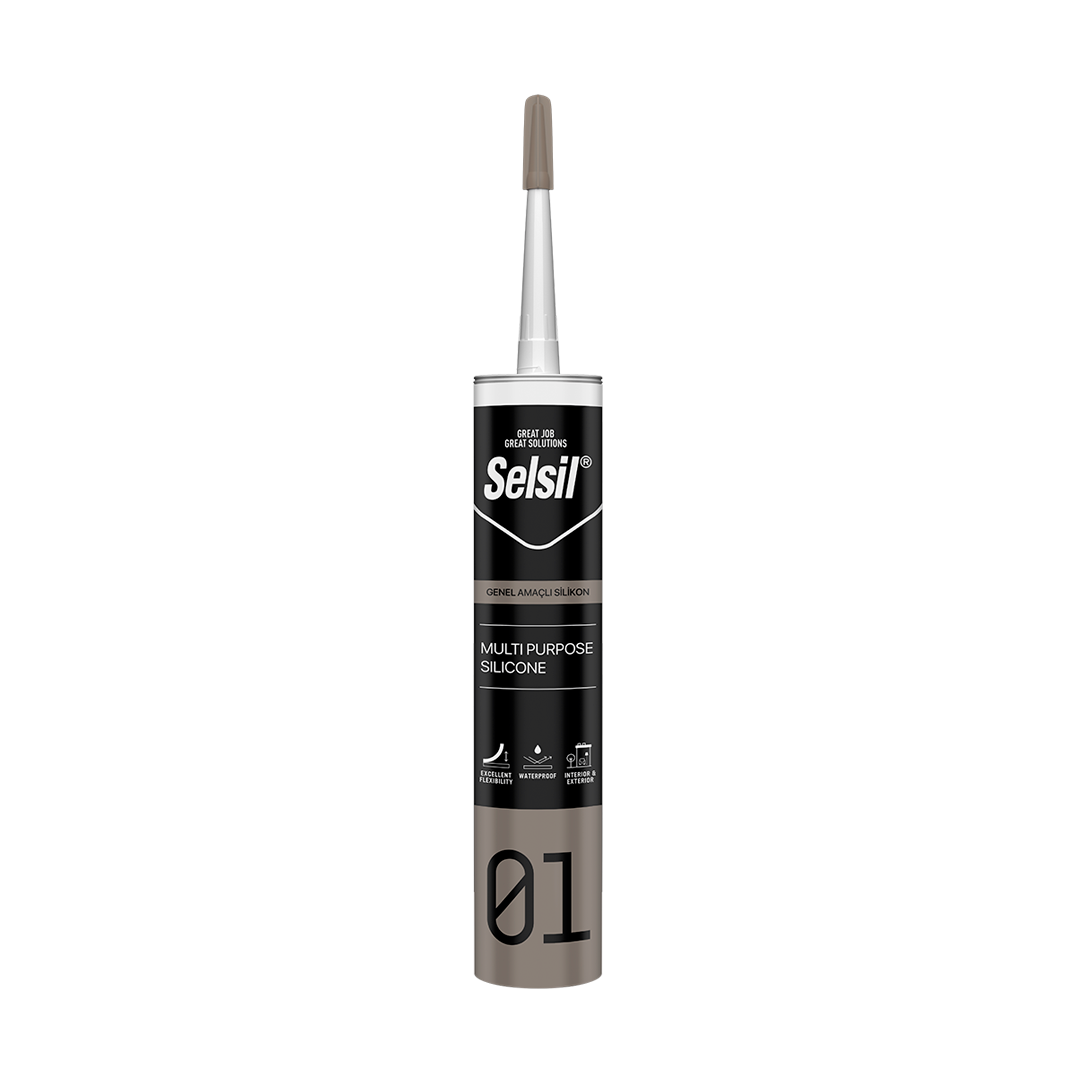 Ürün Bilgileri Genel Bakış Selsil Asetoksi Silikon, tek komponentli, nemle kürleşen asetoksi bazlı silikondur. Özellikler Kolay uygulanabilir. UV ışınlarına ve yüksek ısıya dayanıklıdır, rengini muhafaza eder. Kürleştikten sonra küflenmeye karşı dayanıklıdır. Gözeneksiz yüzeye mükemmel yapışma gösterir. Uygulama ve Kullanım Alanı Genel yapıştırma uygulamalarında, banyo, mutfak ve diğer sıhhi uygulamalarda kullanılır. Aluminyum Cam Sırlı seramik Ambalaj 310 ML Renkler KAHVE Raf Ömrü 12 Ay